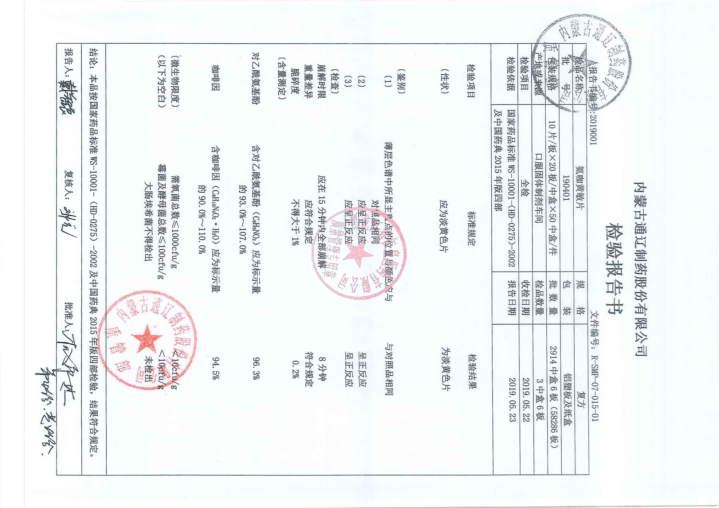 _氨咖黃敏片1904