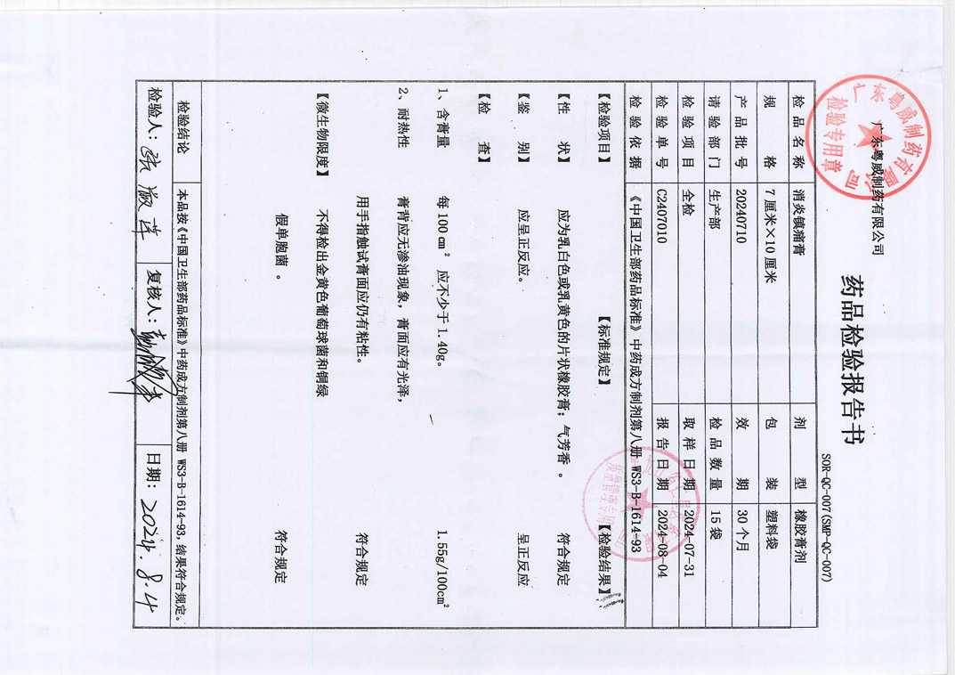 消炎鎮(zhèn)痛膏20240