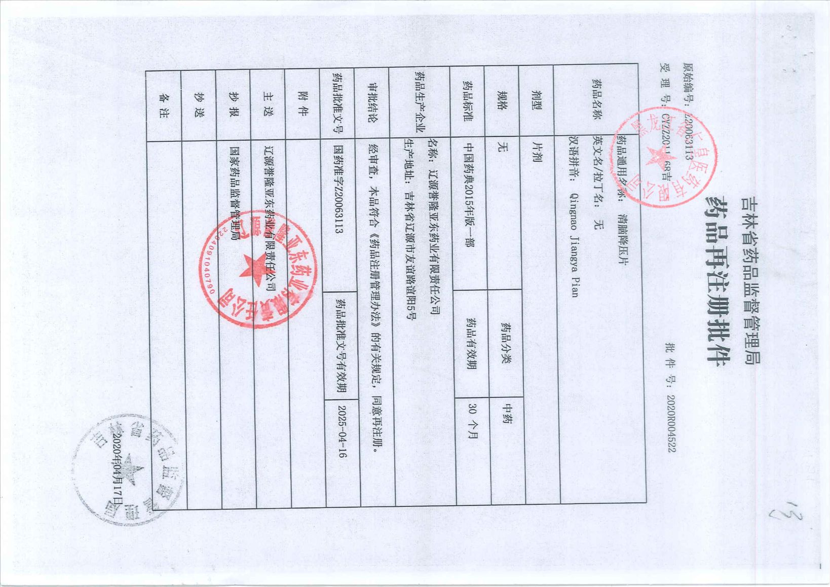 清腦降壓片遼源譽(yù)隆亞