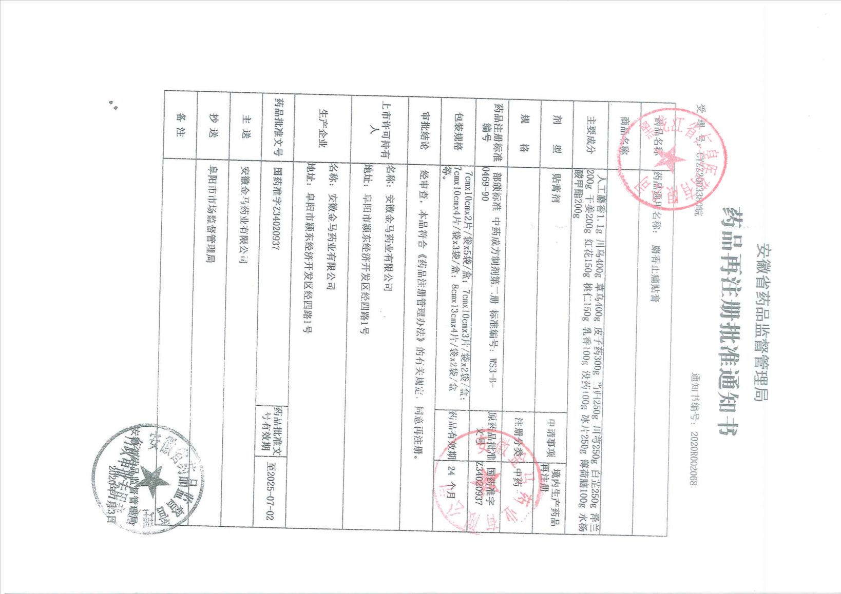 麝香止痛貼膏安徽金馬