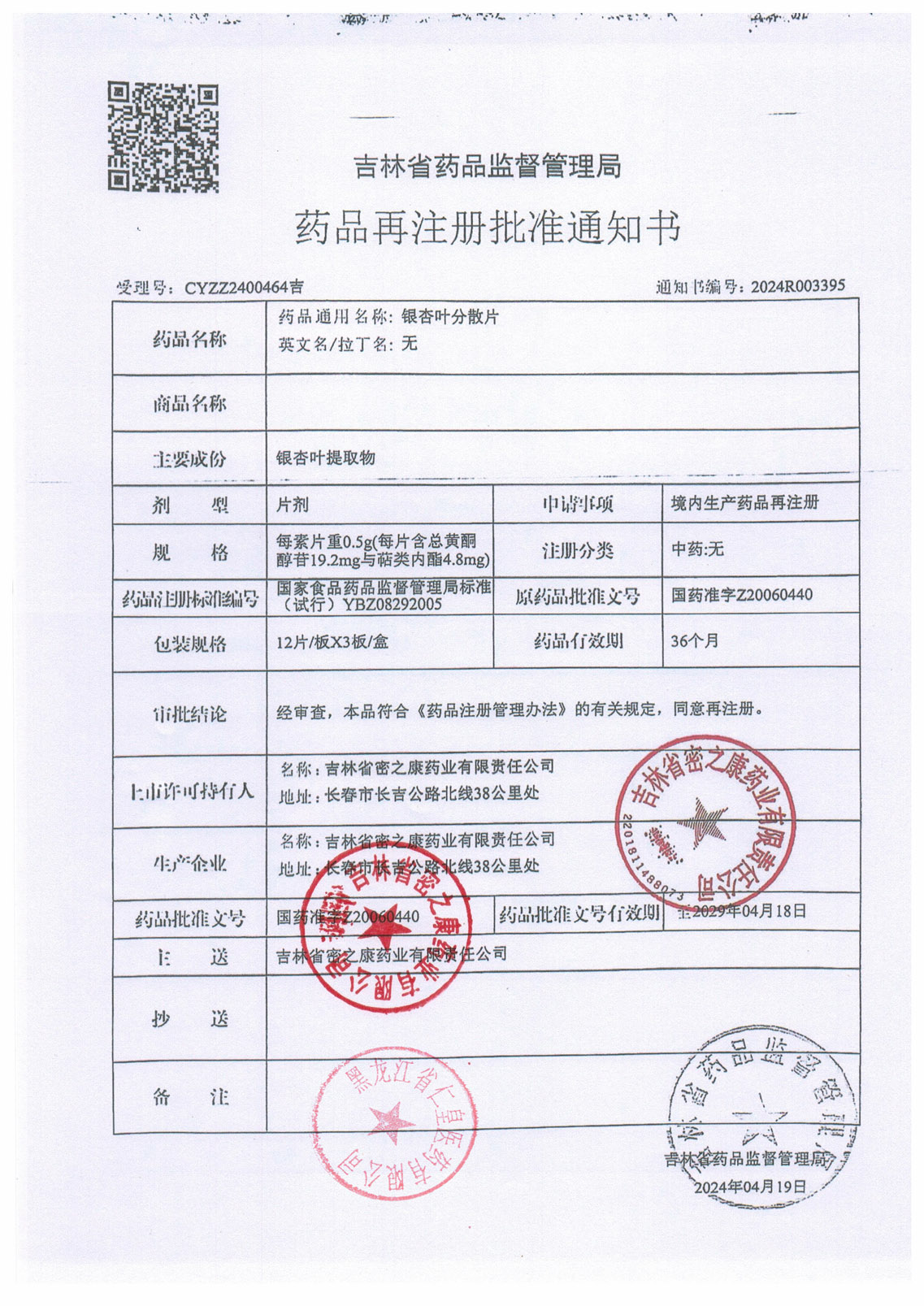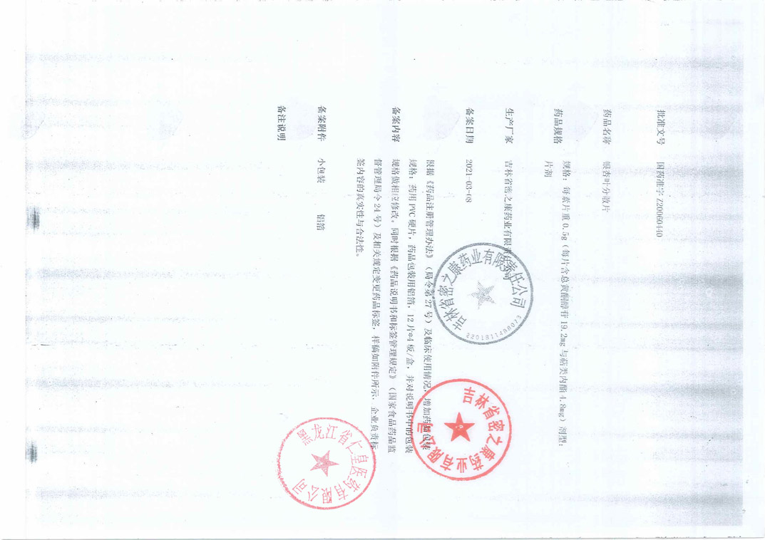 銀杏葉分散片吉林省密