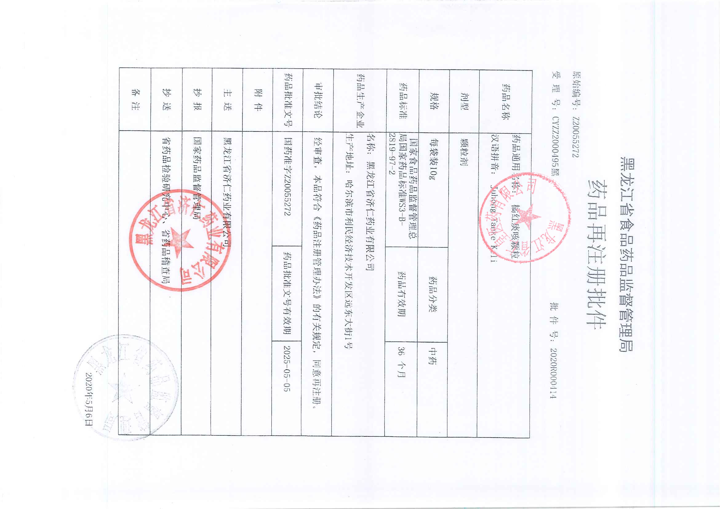 橘紅痰咳顆粒黑龍江省