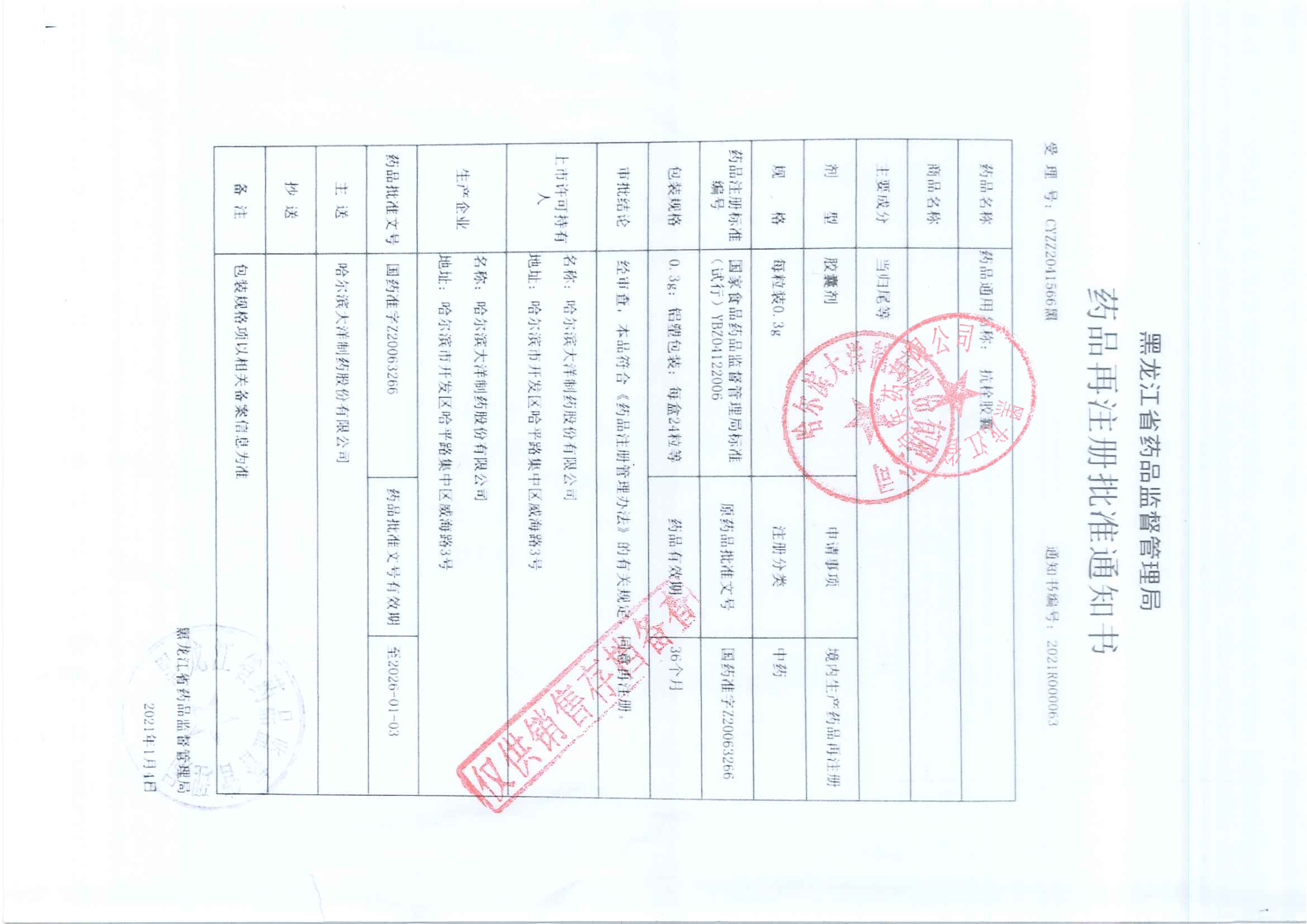 抗栓膠囊哈爾濱大洋制