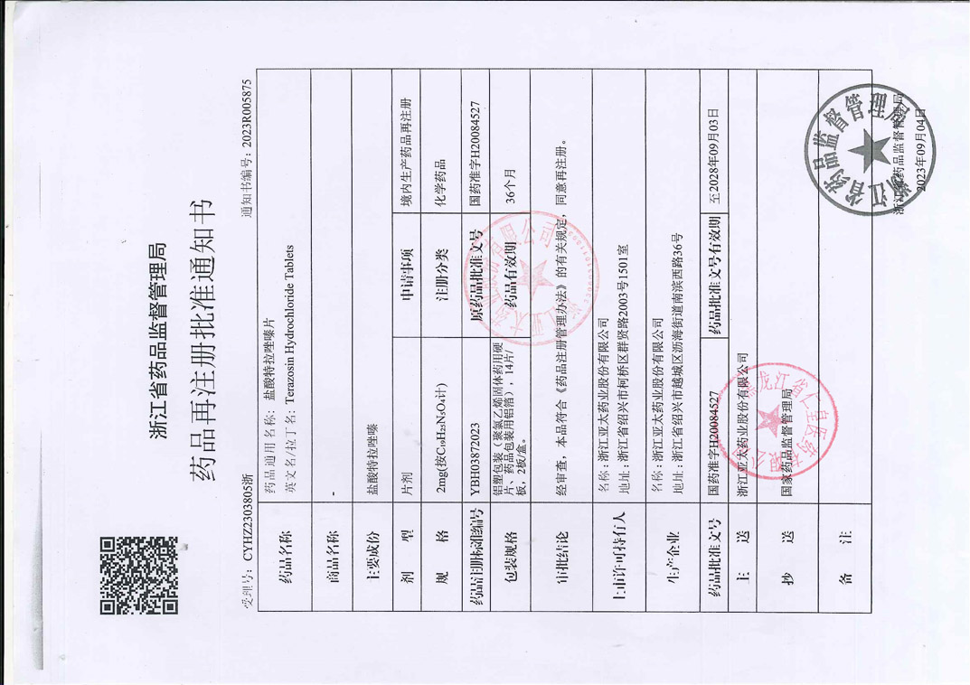 鹽酸特拉唑嗪片浙江亞