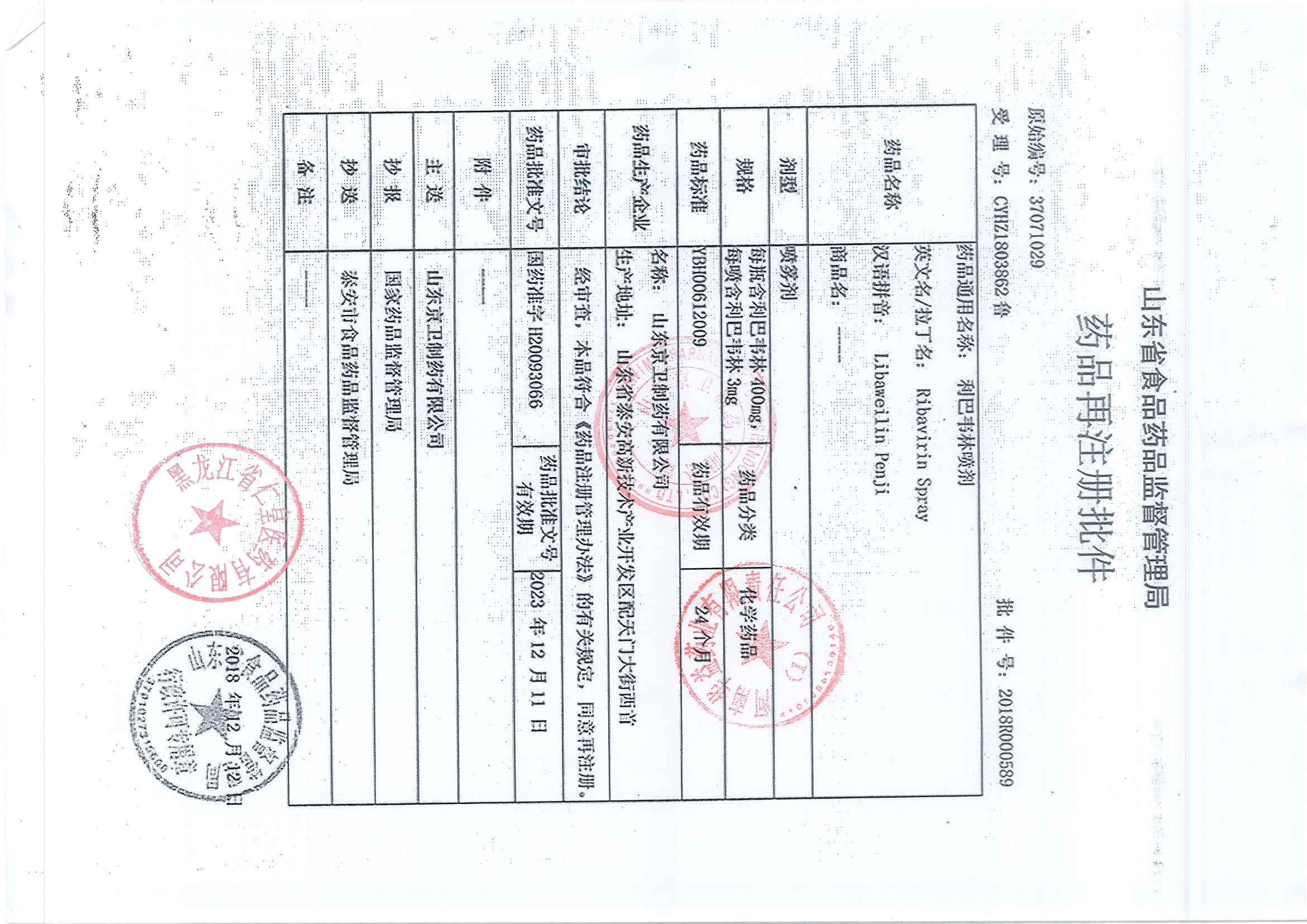 _利巴韋林噴劑山東京
