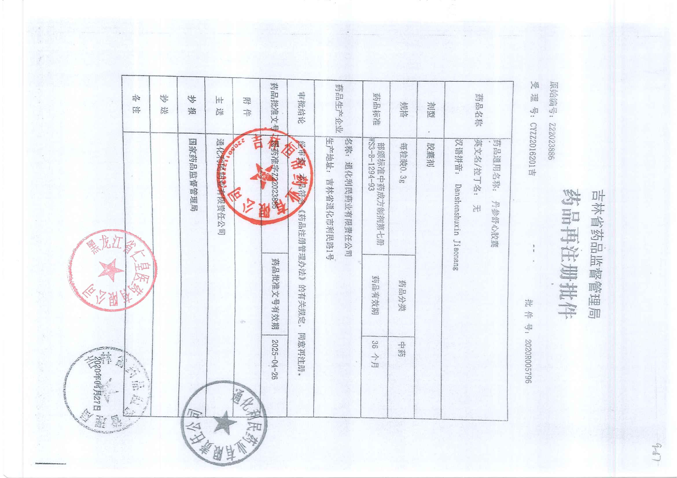 _丹參舒心膠囊通化利