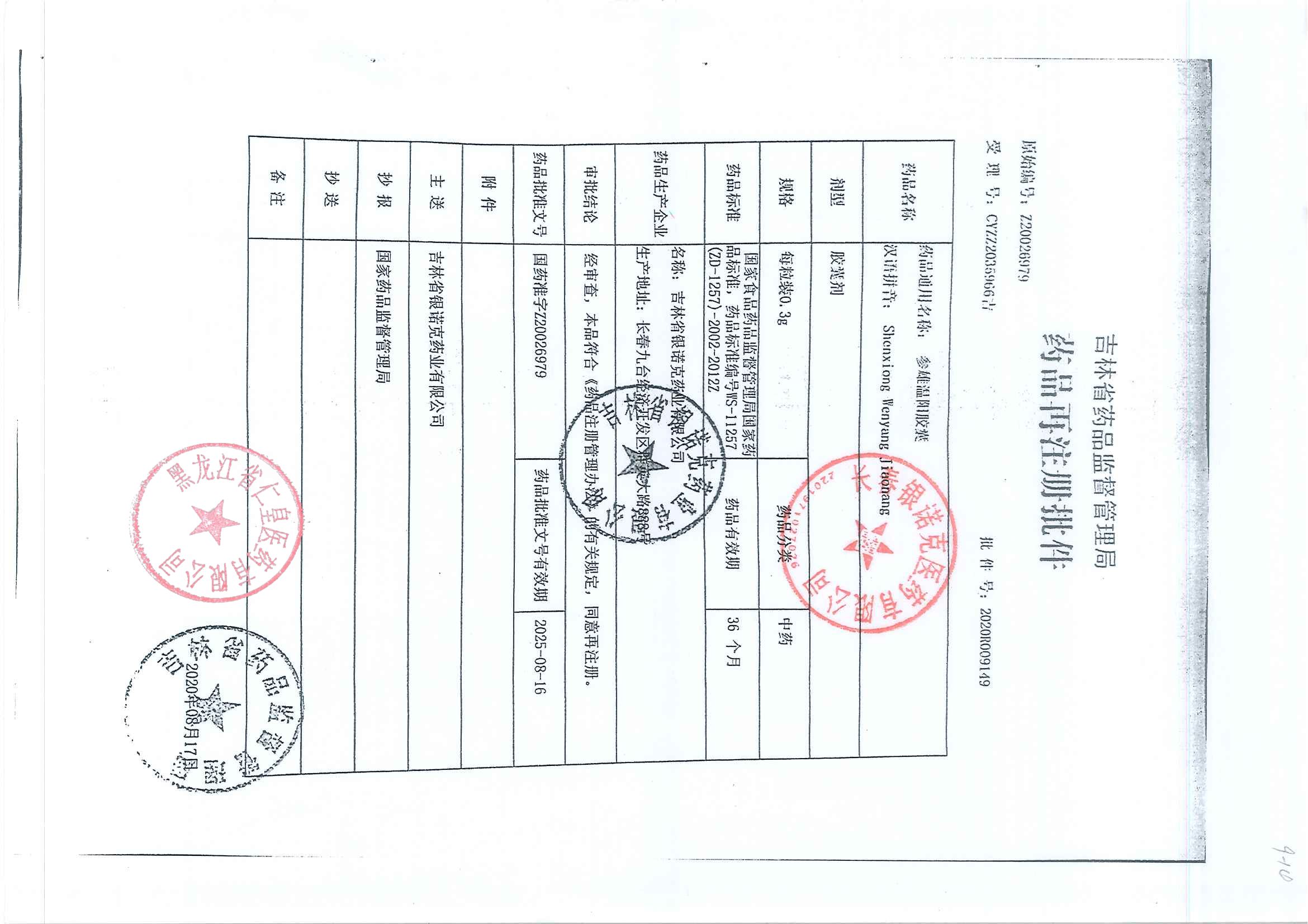 _參雄溫陽膠囊吉林省