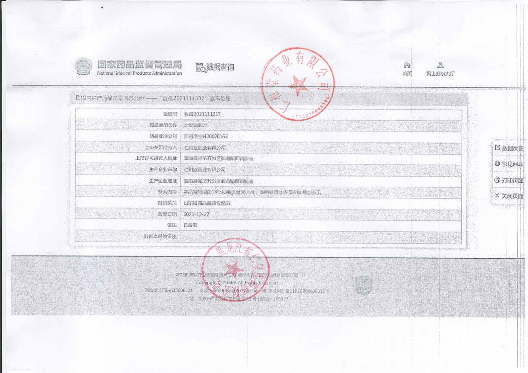 非那雄胺片仁和堂藥業(yè)