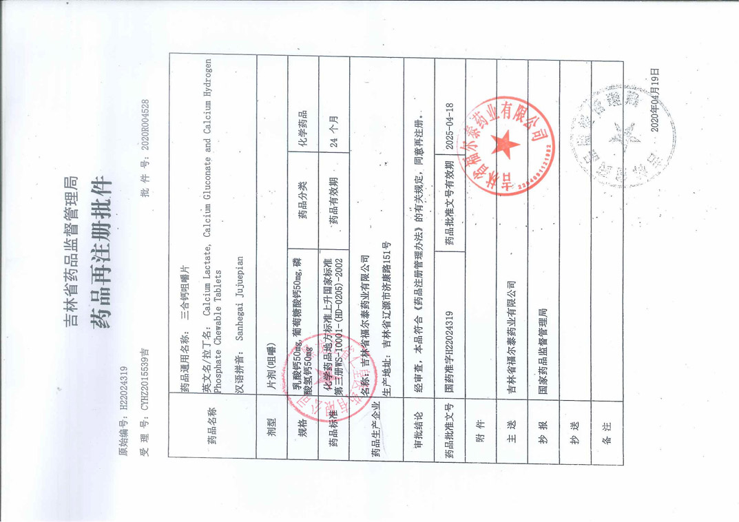 三合鈣咀嚼片吉林省福