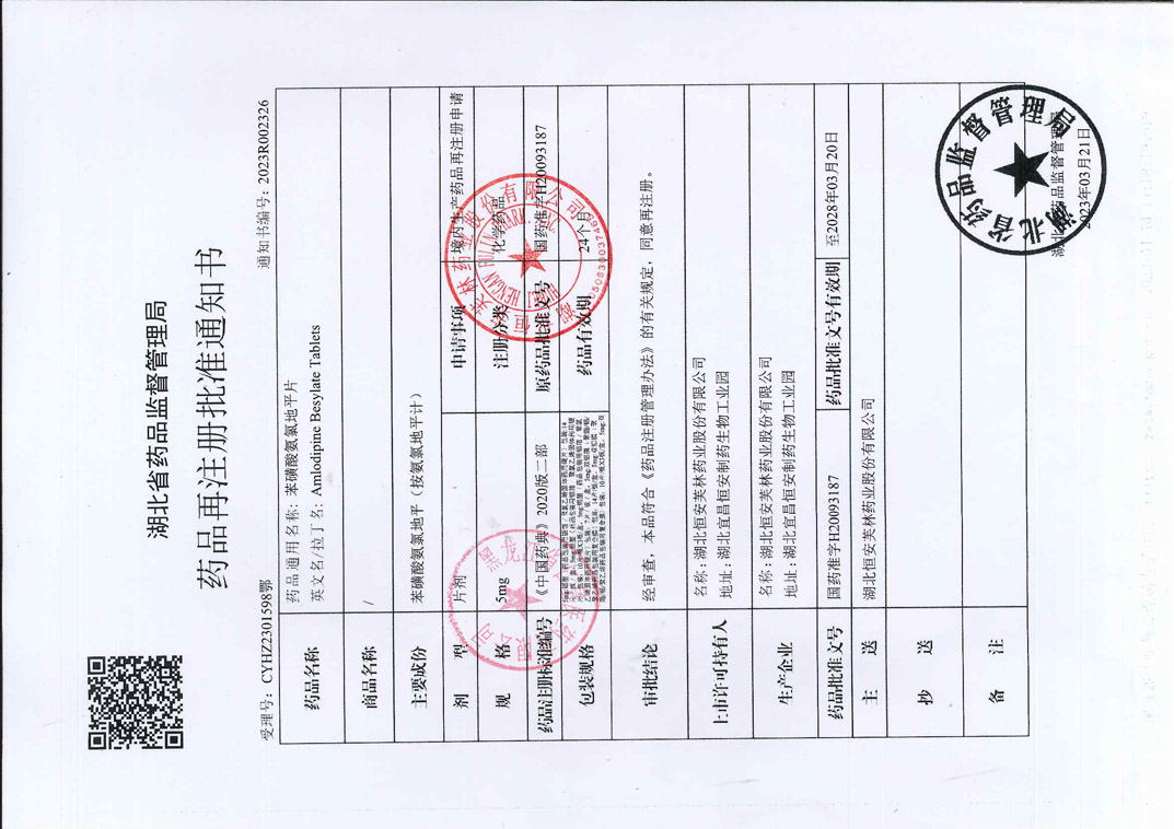 苯磺酸氨氯地平片湖北