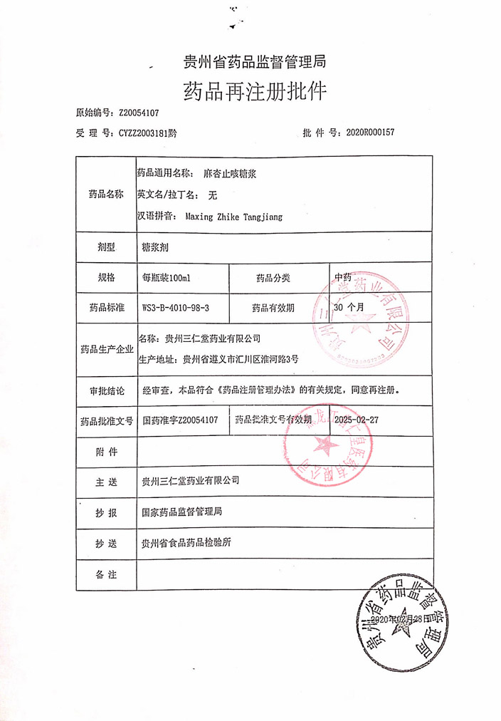 麻杏止咳糖漿貴州三仁