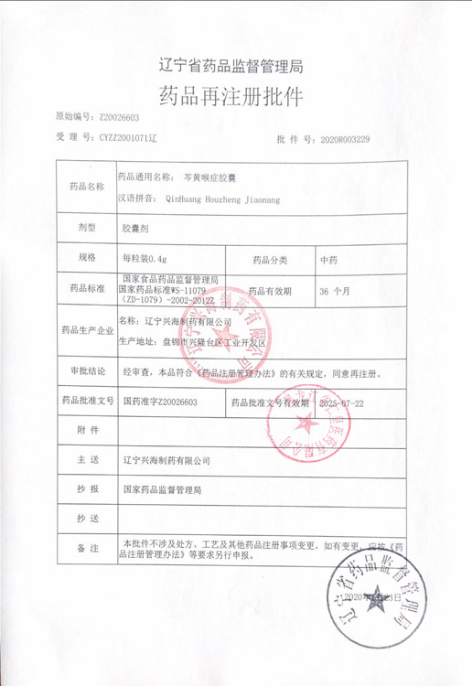芩黃喉癥膠囊遼寧興海