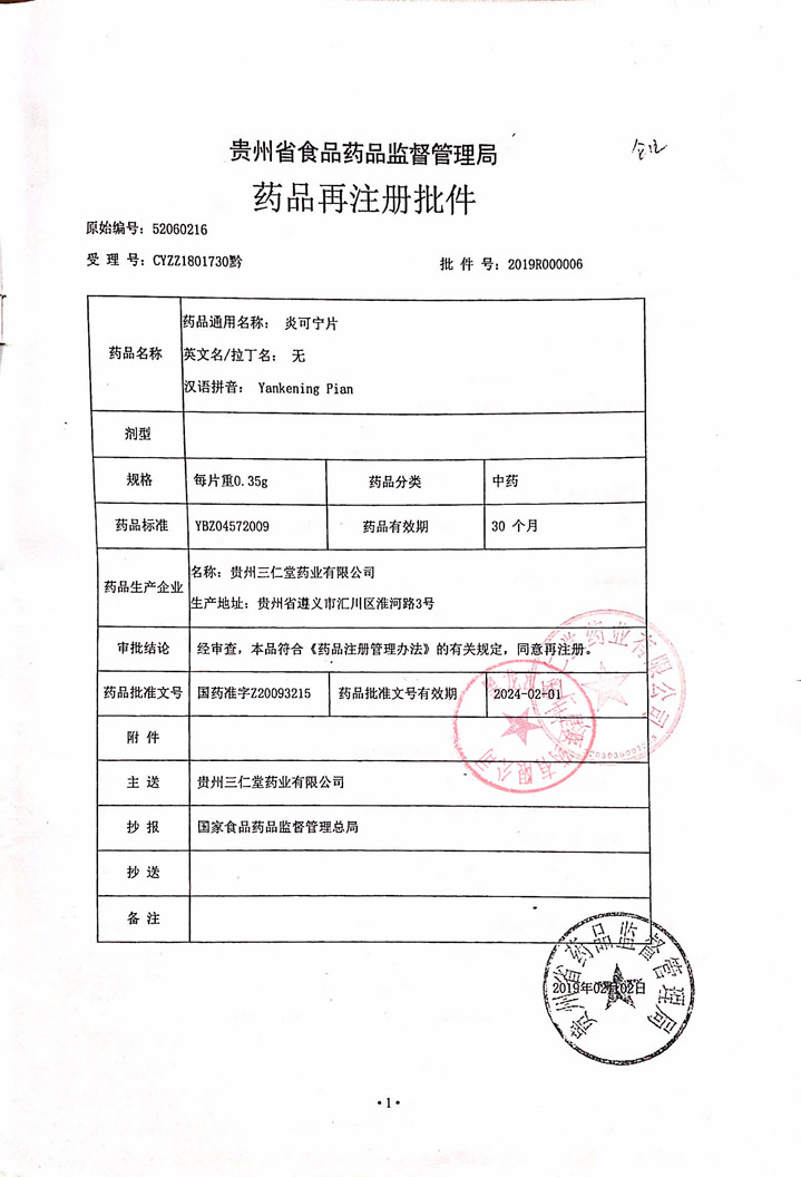 炎可寧片貴州三仁堂藥