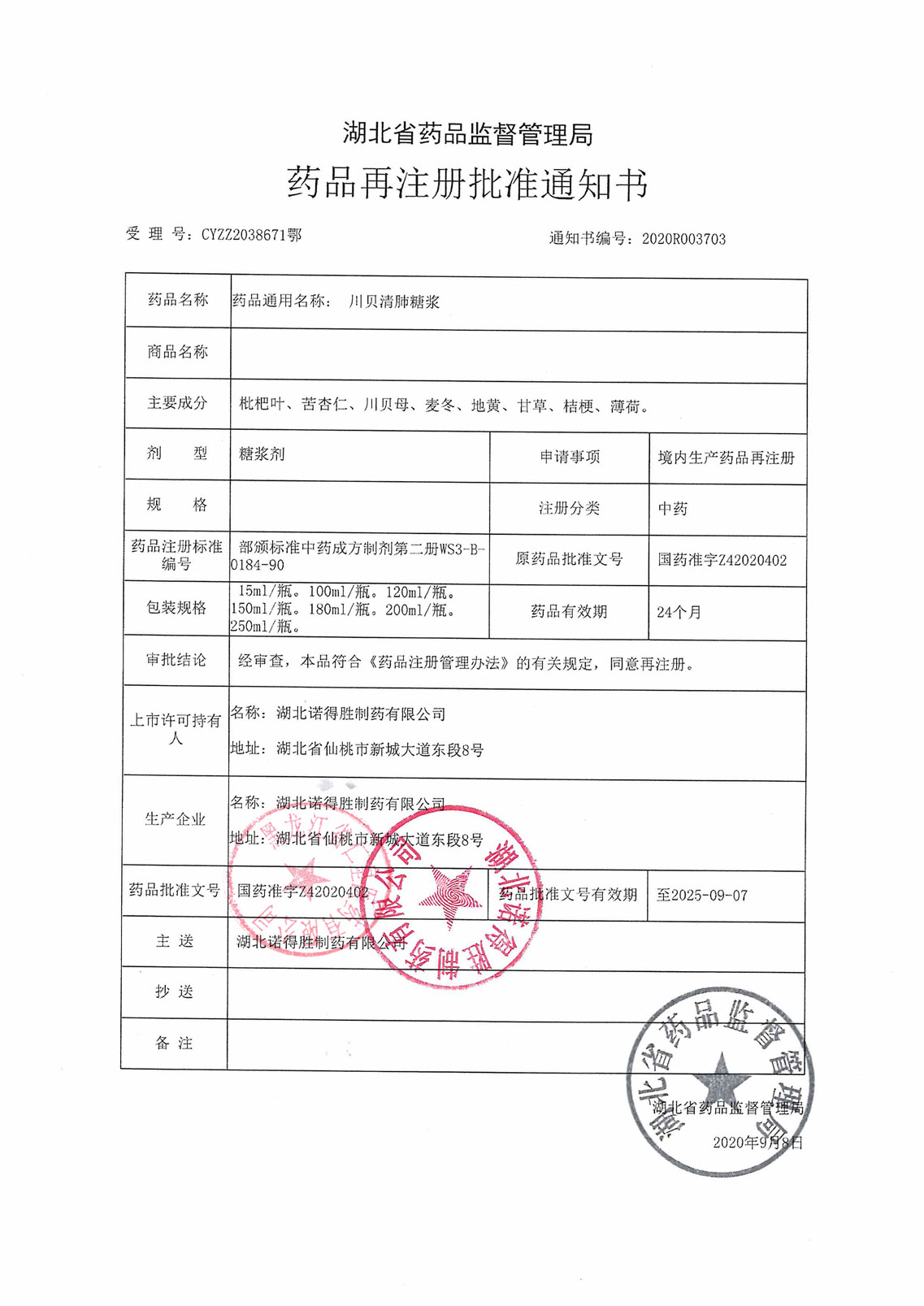 川貝清肺糖漿湖北諾得