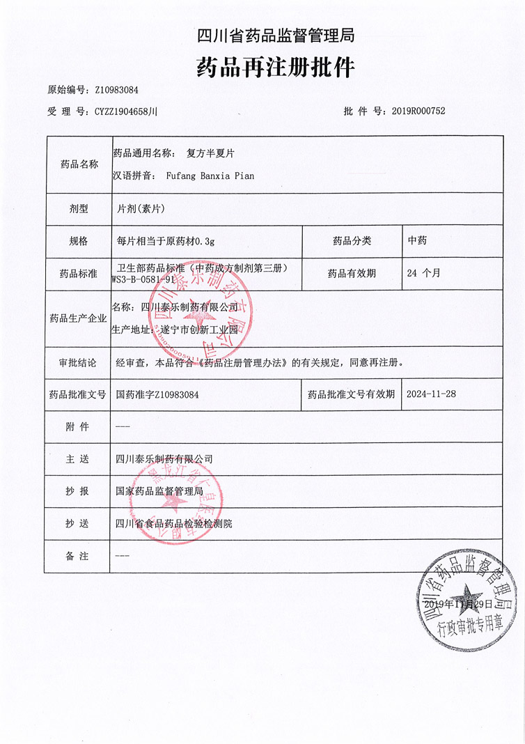 復方半夏片四川泰樂制