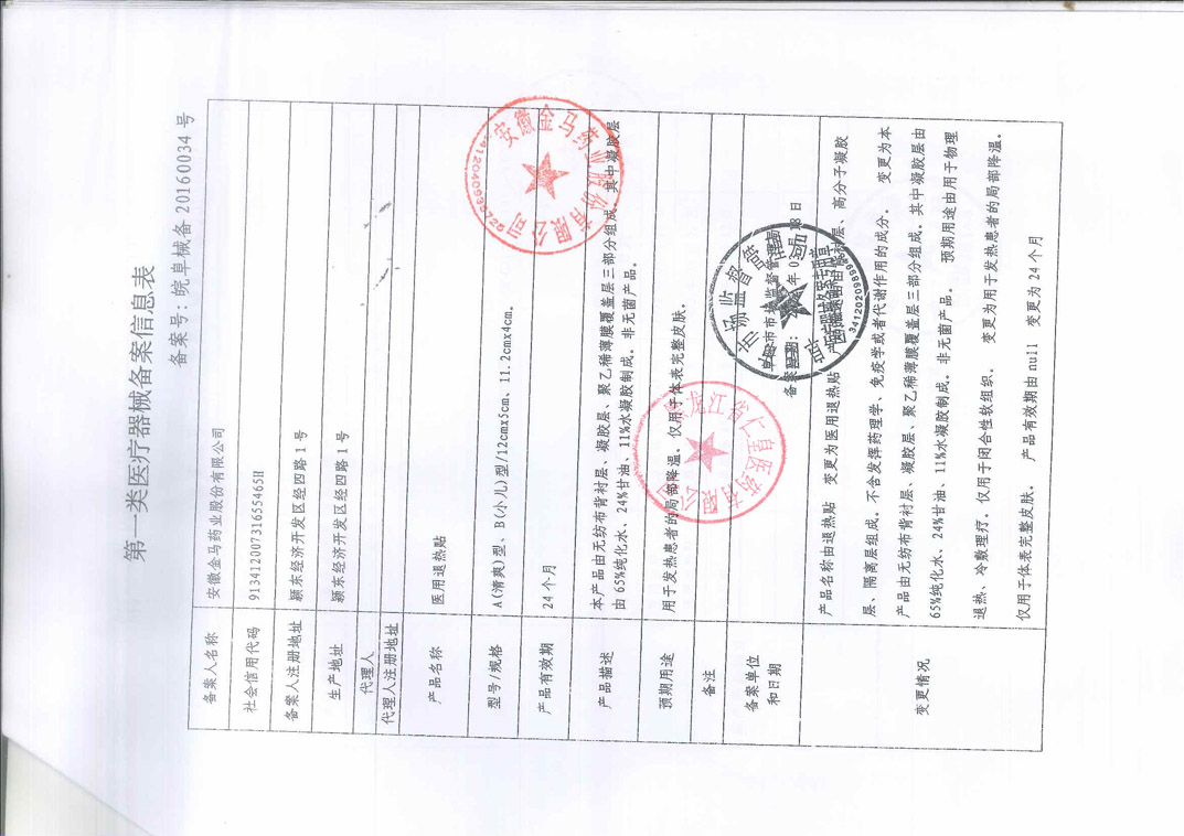 醫(yī)用退熱貼安徽金馬藥