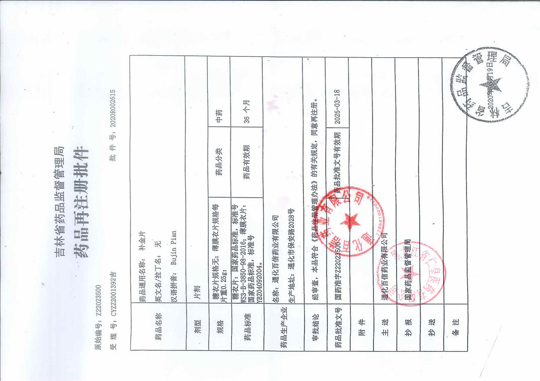 補(bǔ)金片通化百信藥業(yè)有