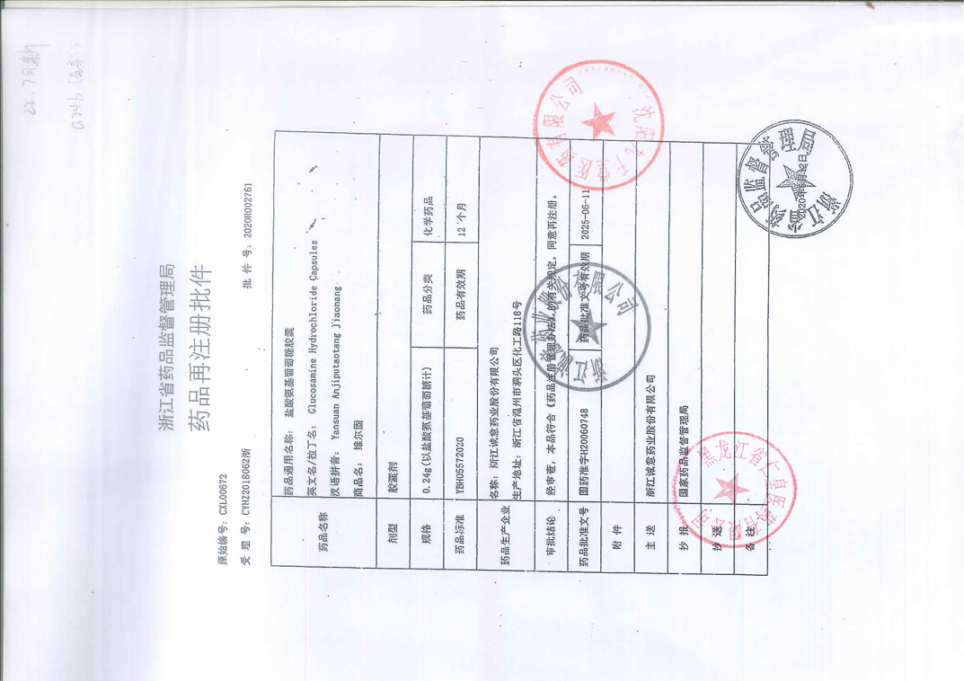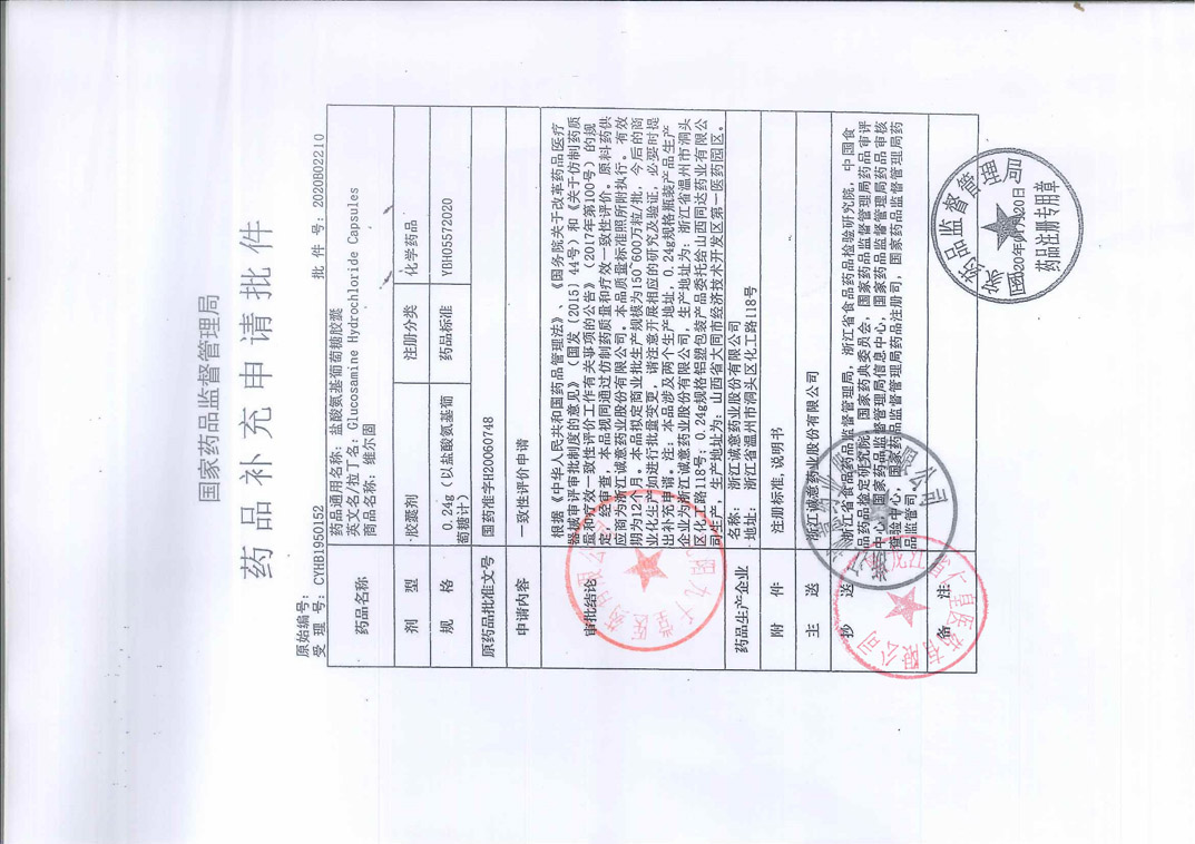 鹽酸氨基葡萄糖膠囊浙