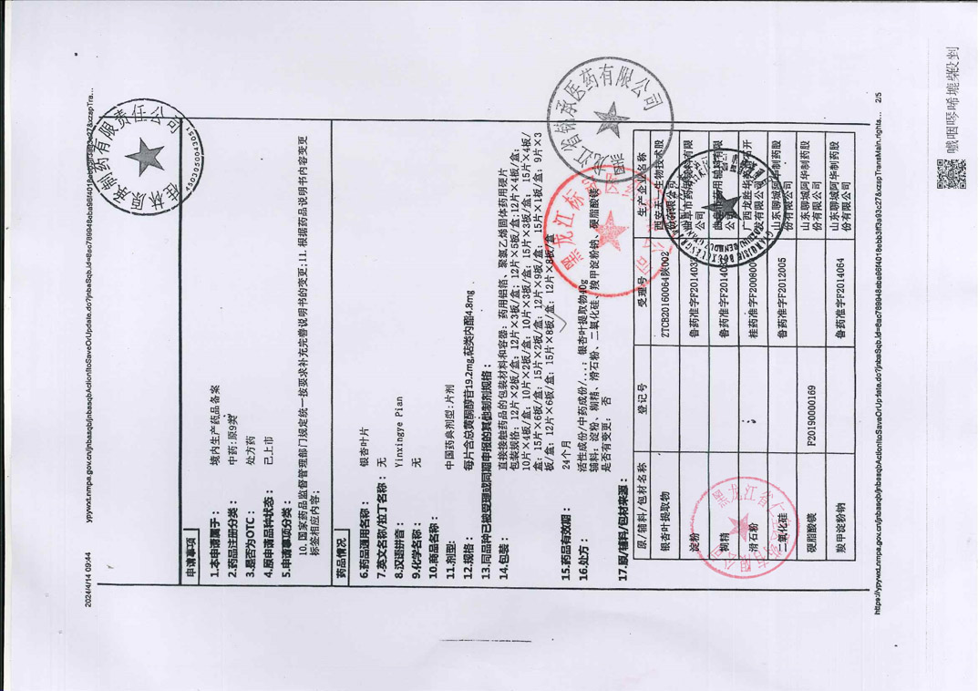 銀杏葉片廣西圣特藥業(yè)