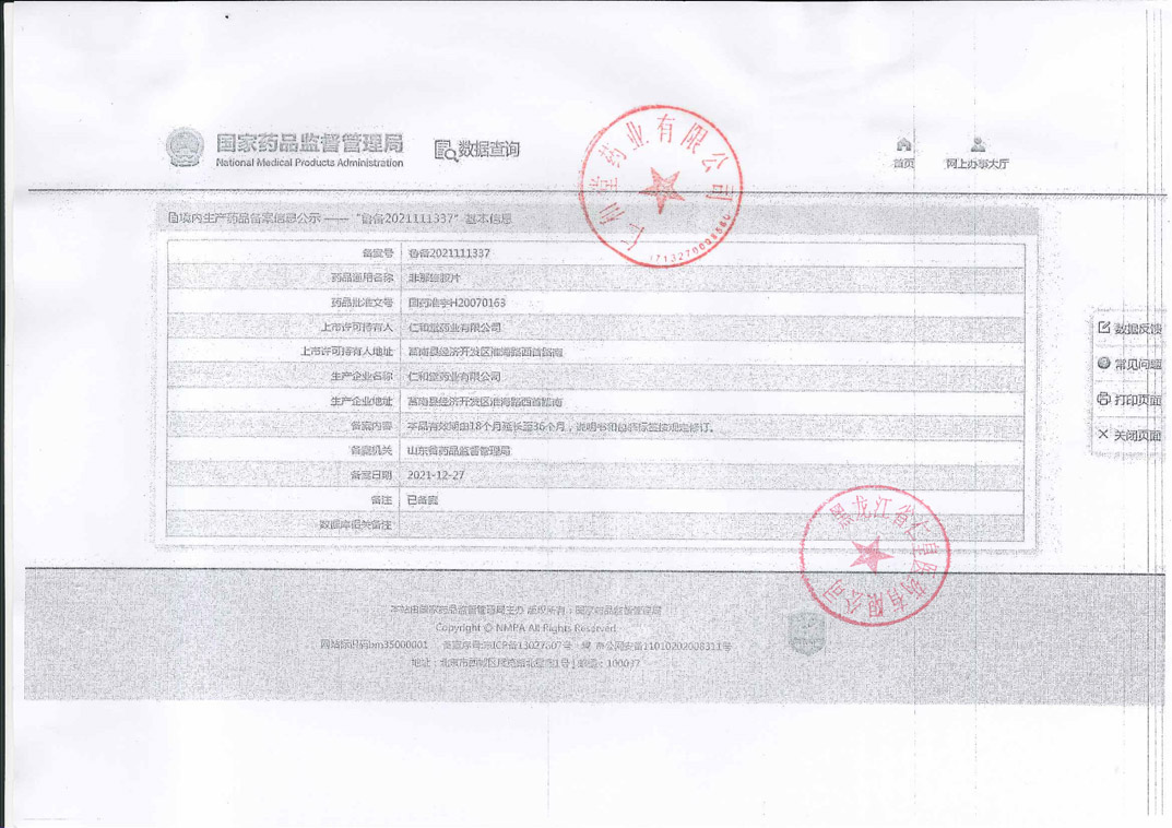 非那雄胺片仁和堂藥業(yè)