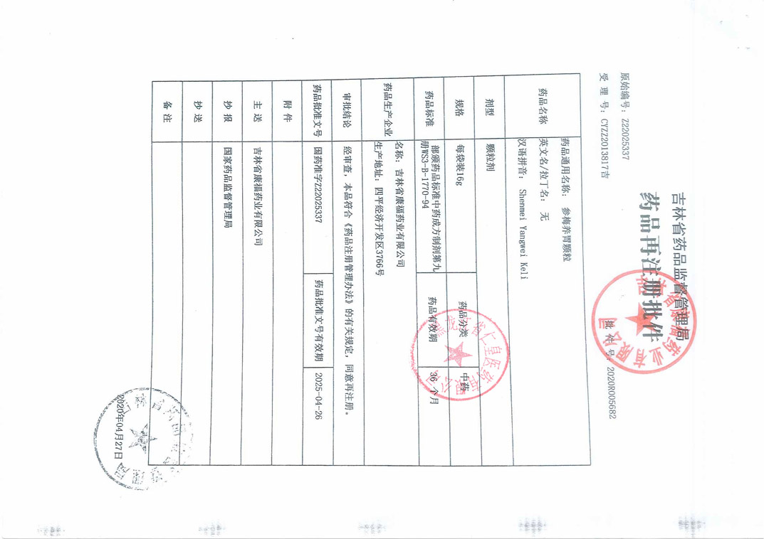 參梅養(yǎng)胃顆粒吉林省康