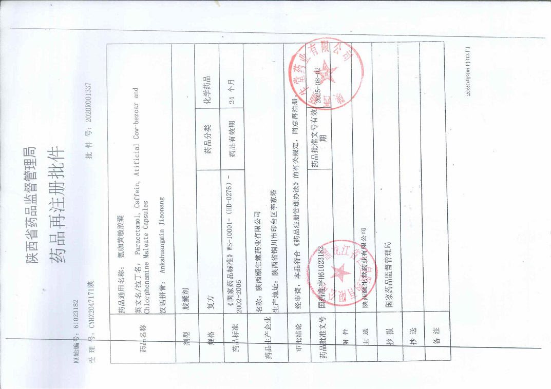 氨咖黃敏膠囊陜西頤生