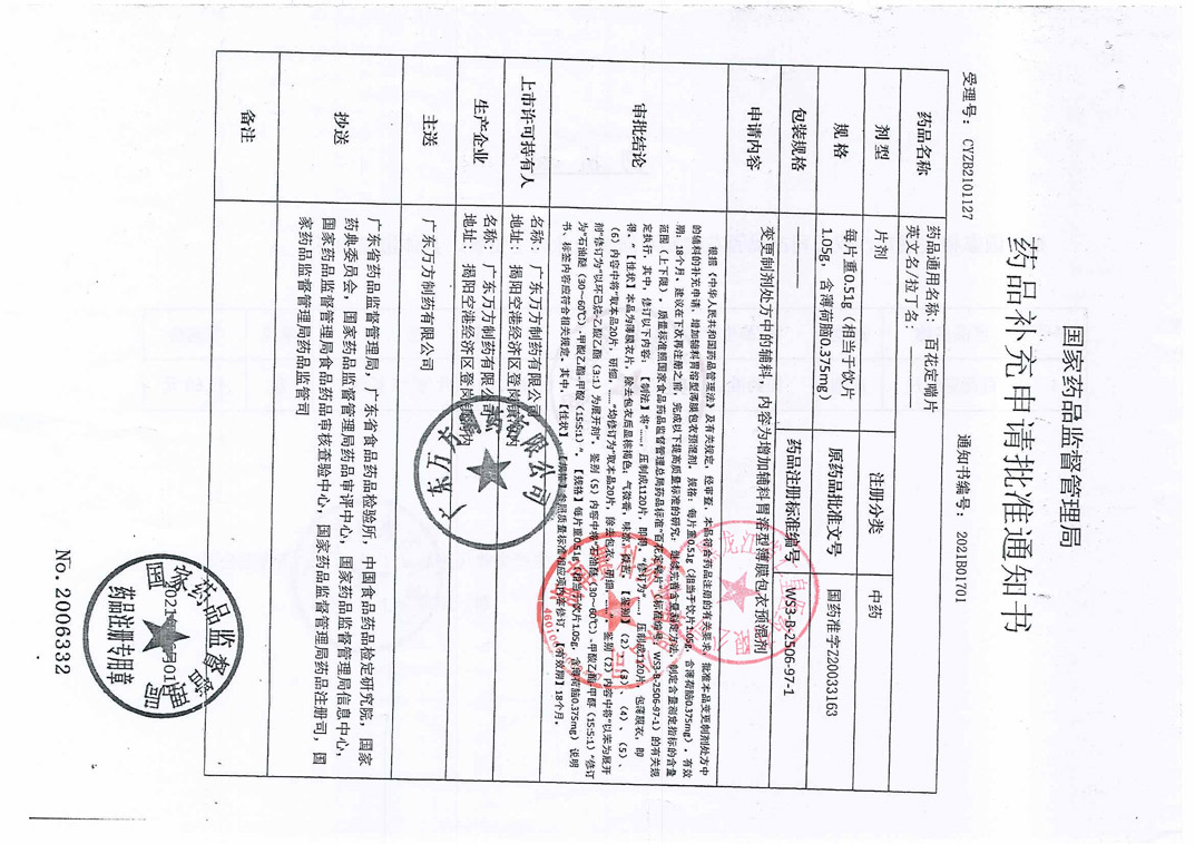 百花定喘片廣東萬(wàn)方制