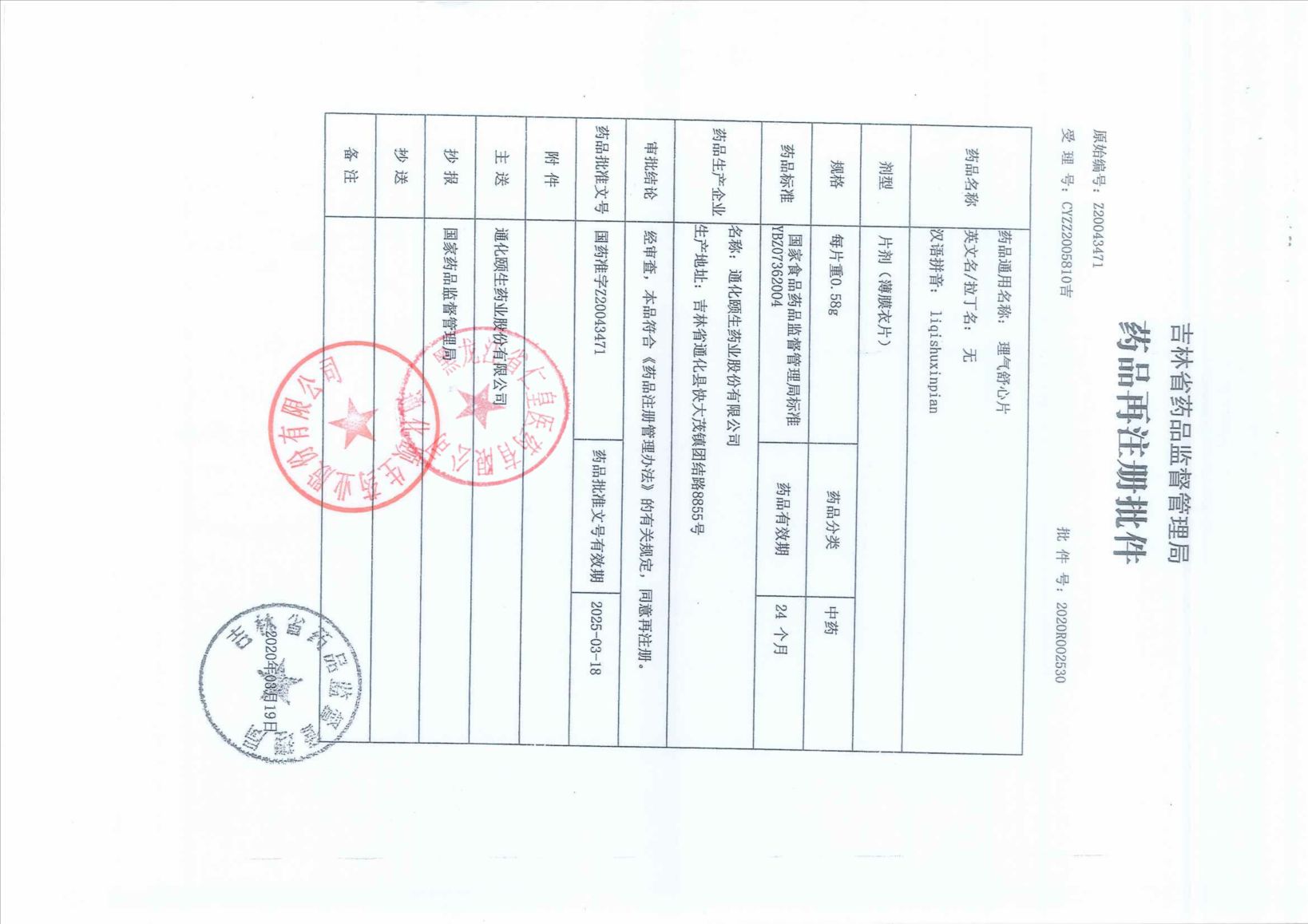 理氣舒心片通化頤生藥