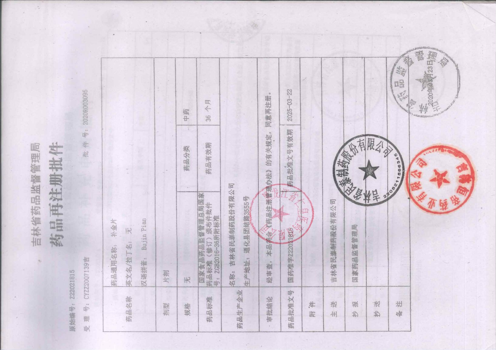 補(bǔ)金片吉林省民泰制藥