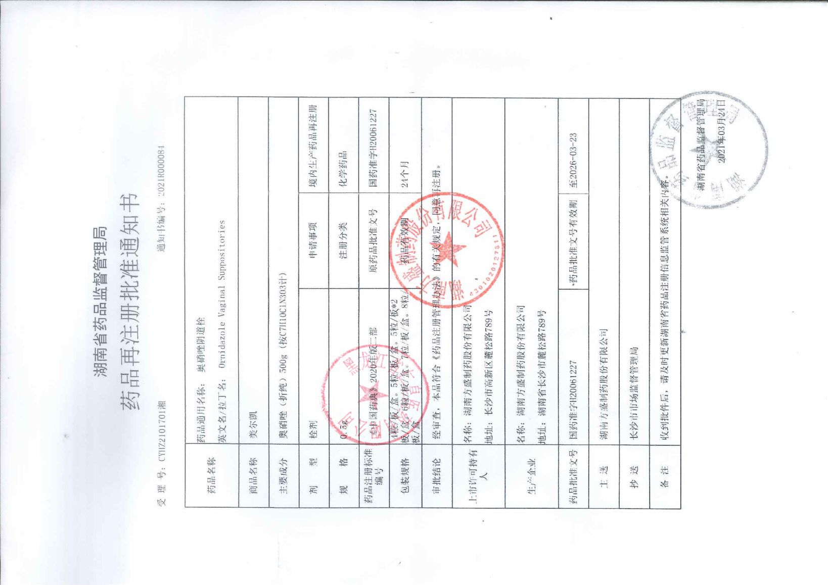奧硝唑陰道栓湖南方盛
