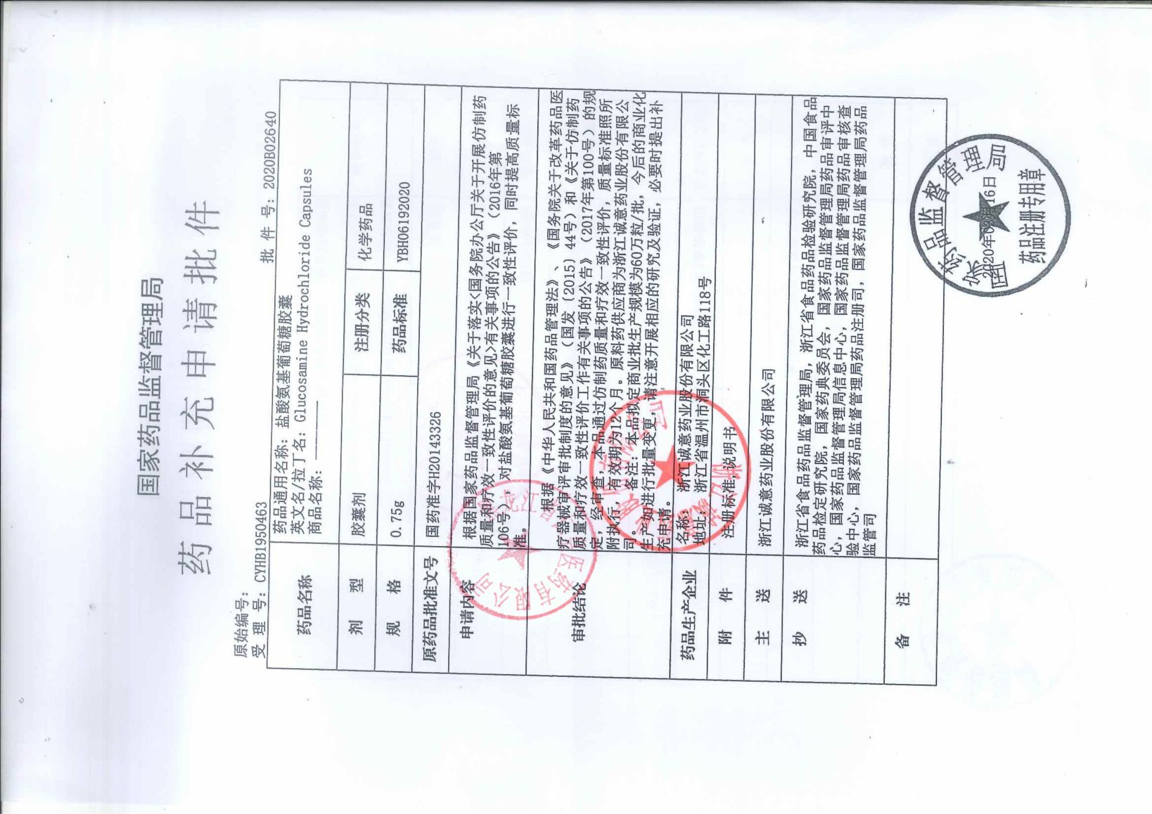 鹽酸氨基葡萄糖膠囊浙