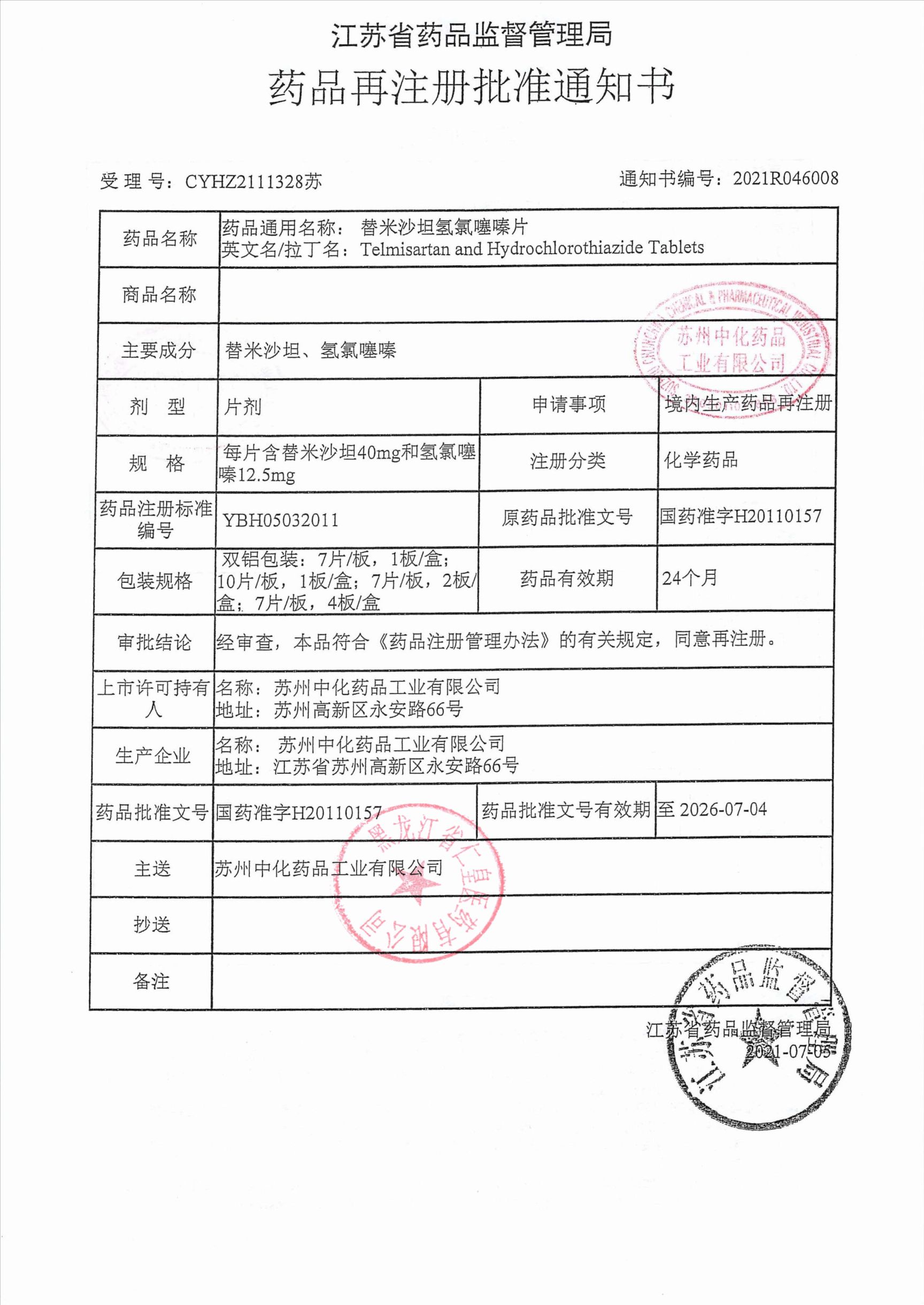 替米沙坦氫氯噻嗪片蘇